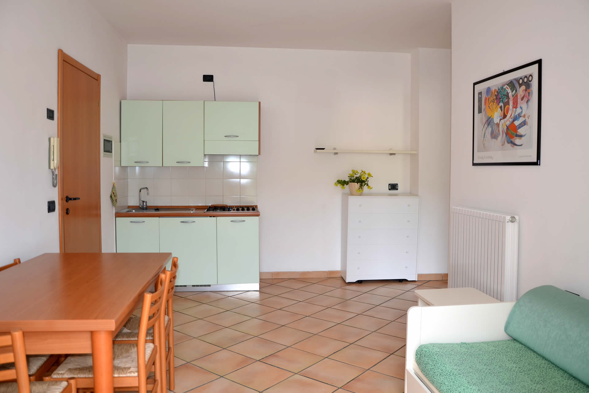 Appartamento composto da camera matrimoniale, zona soggiorno con angolo cottura completamente arredato, divano letto estraibile ed un ulteriore letto singolo, bagno con doccia.
